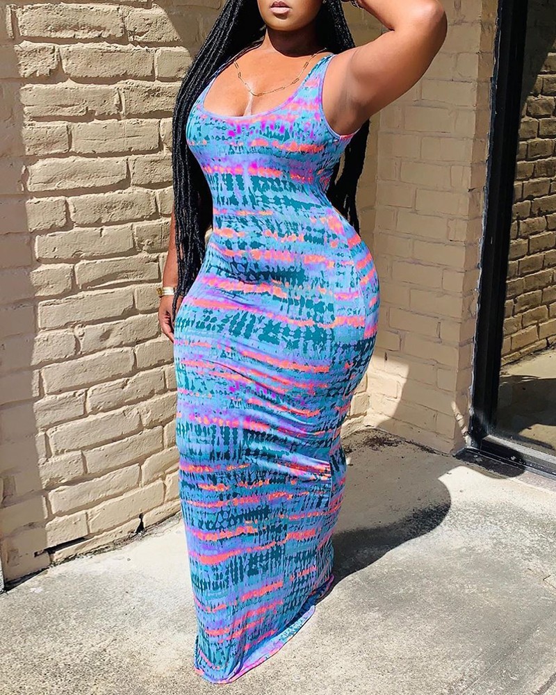 Tie dye print crisscross backless maxi dress